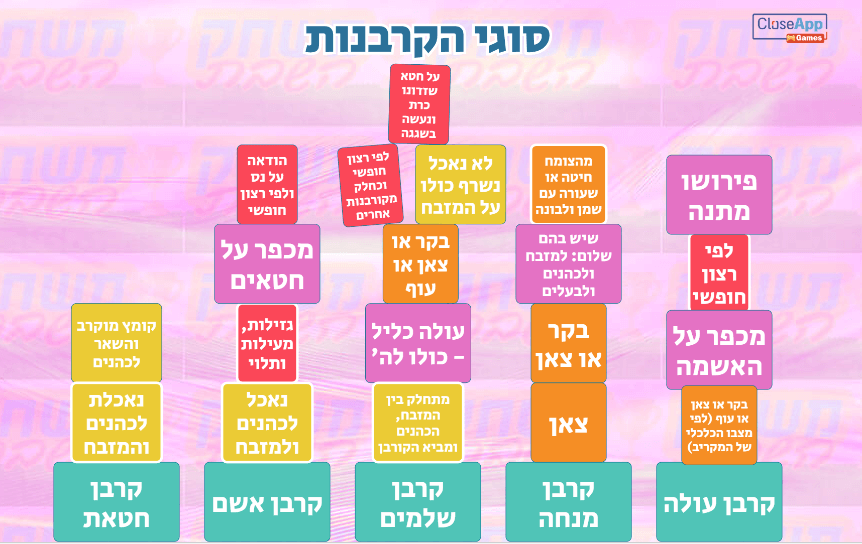 משחק לפרשת ויקרא - סוגי הקורבנות - משחק השבת